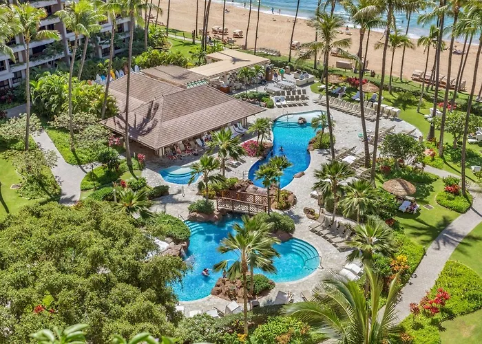 Kaanapali Alii, a 4-star Lahaina hotel, features spacious beachfront accommodations with one- and two-bedroom residences equipped with gourmet kitchens. Guests can enjoy access to a 1 hectare super pool complex, fitness center, and spa services.